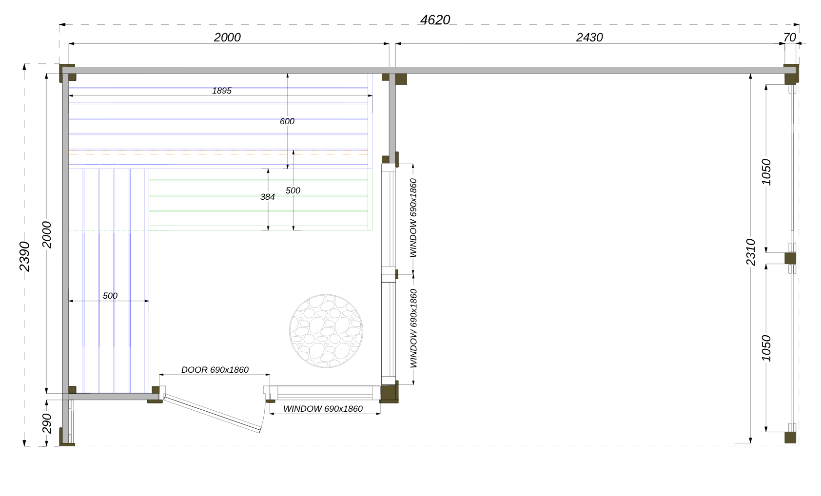 | profondeur totale | 250 cm including roof overhang |